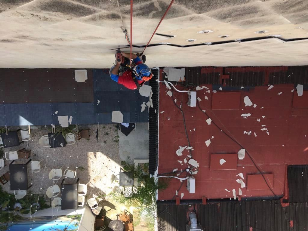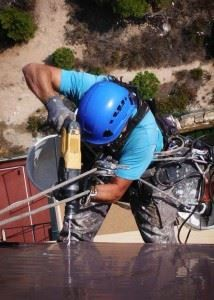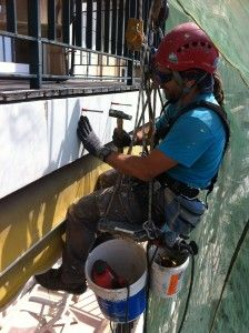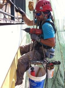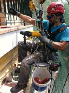 En Altitud damos una fácil solución y de total seguridad a este problema cuando se presenta. El procedimiento es sencillo, lo primero es agujerear mediante taladro la piedra y el soporte (a poder ser llegando siempre al hormigón estructural del edificio o al tabique en su defecto). Después limpiaremos el agujero realizado con un soplador y un cepillo de púas cilíndrico. Acto seguido se procede a la colocación de unos tirafondos de “Hilti” de acero inoxidable mediante atornilladora y problema solucionado.