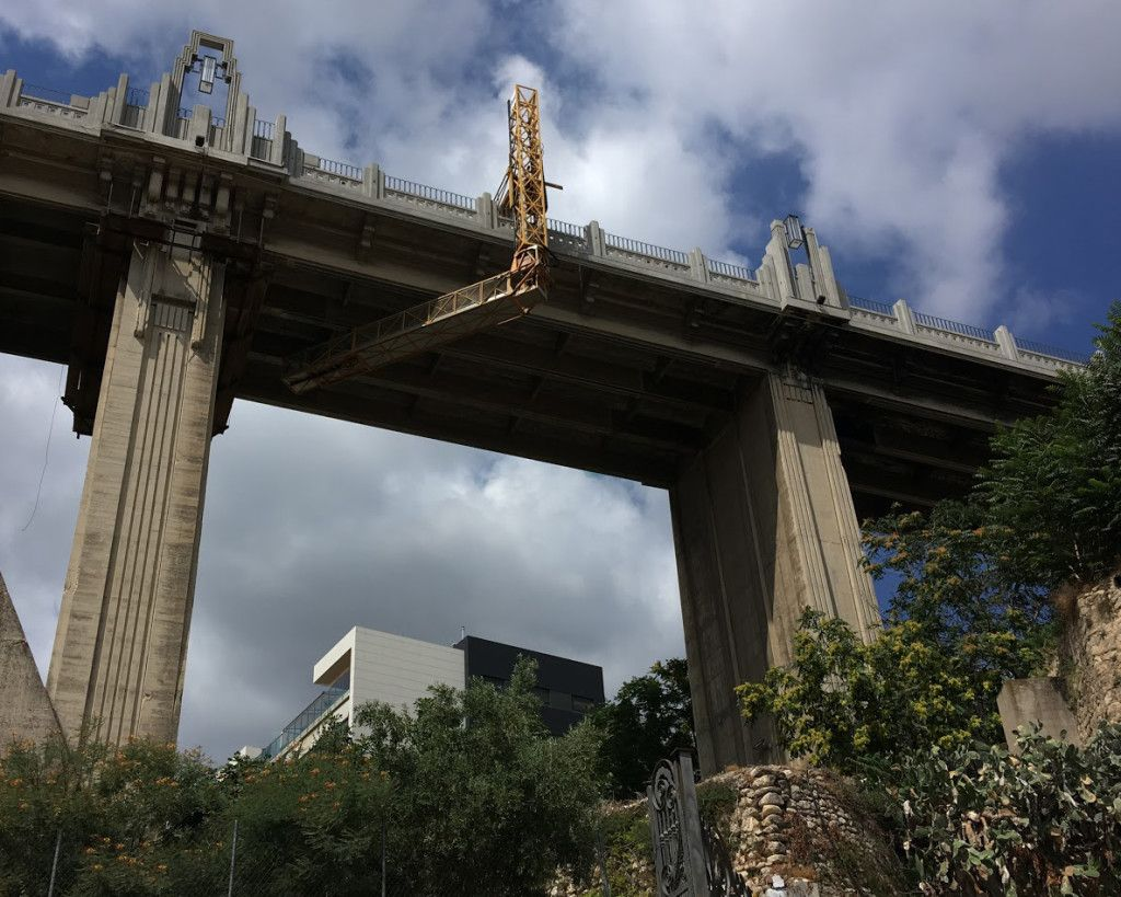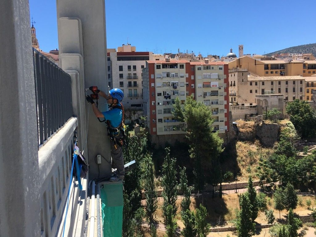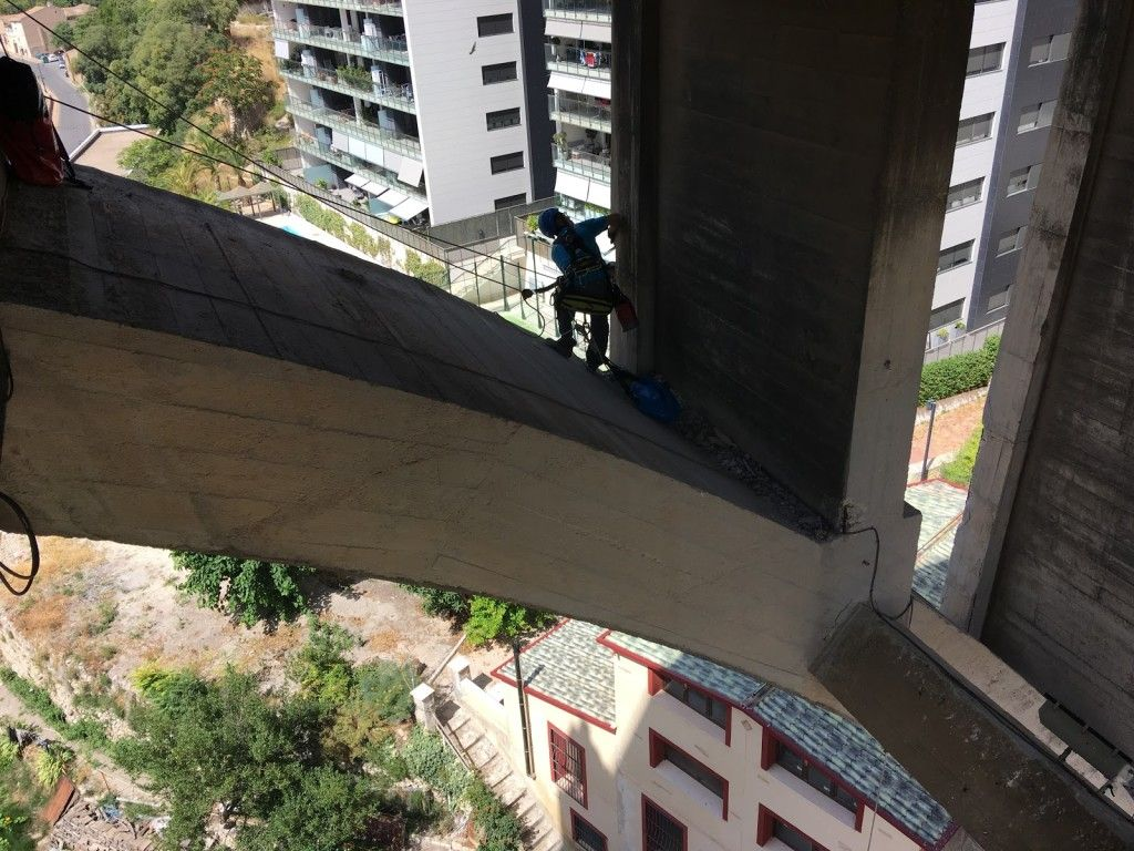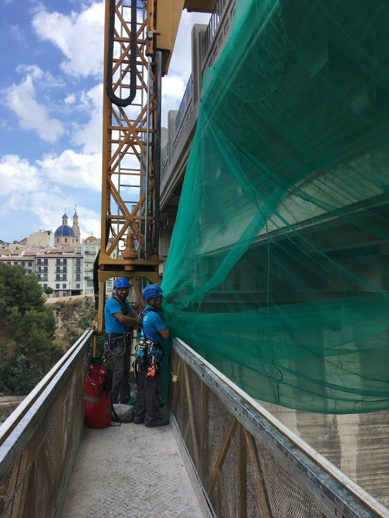 Para la segunda fase y dado que era en una zona más compleja de trabajar, ya que entrabamos en la zona arqueada del puente tuvimos que echar mano de nuestra experiencia en trabajos verticales y en altura.