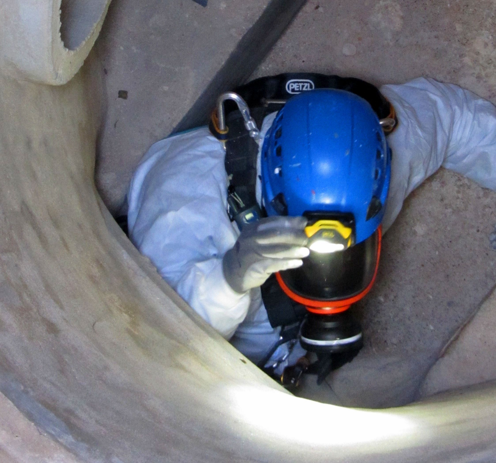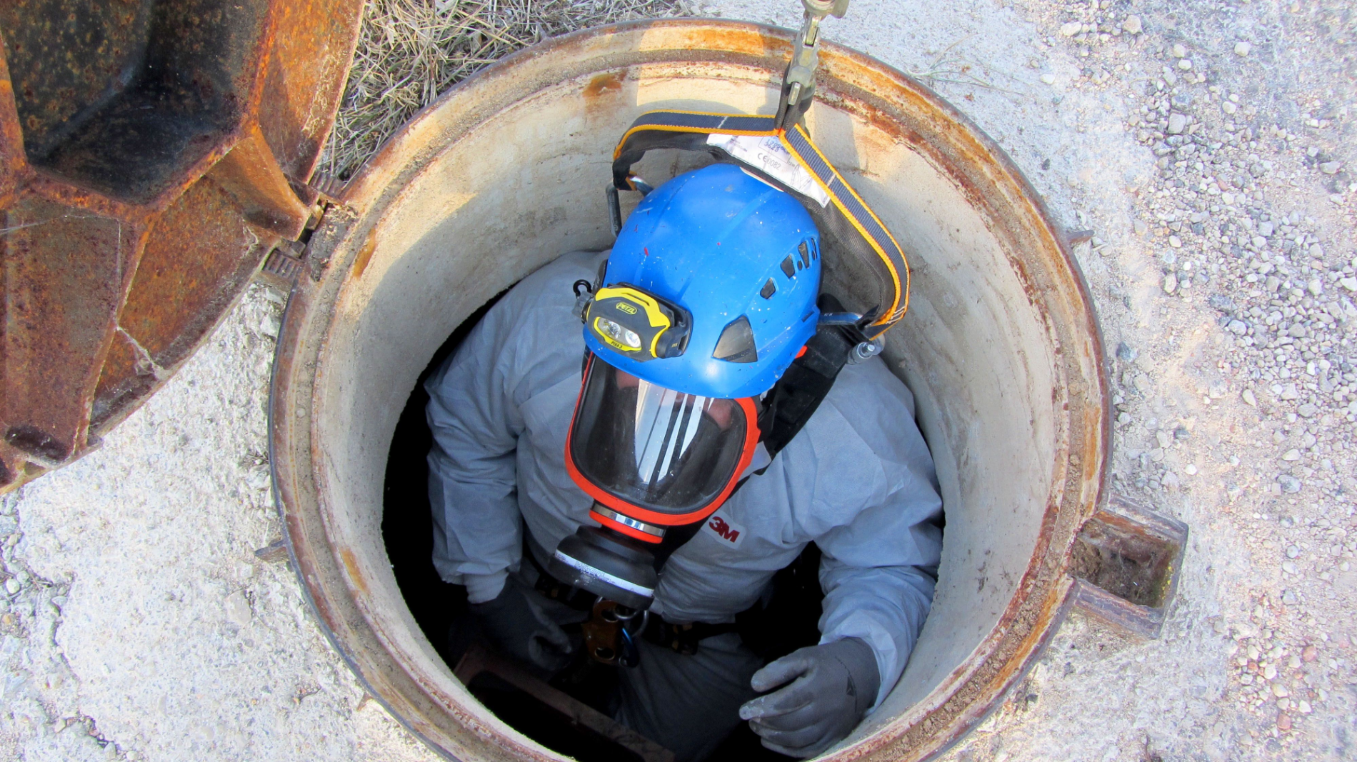 Por lo tanto, los equipos de protección colectiva e individual, la evaluación de riesgos, los permisos de trabajo y los planes de seguridad y evacuación deben ser estrictos y específicos: equipo exterior en comunicación permanente, formación específica de los trabajadores, equipos de respiración o de protección respiratoria, medición de gases tóxicos y proporción de oxígeno, etc.