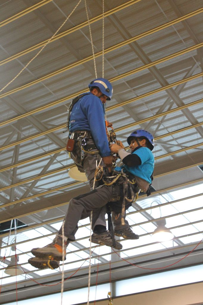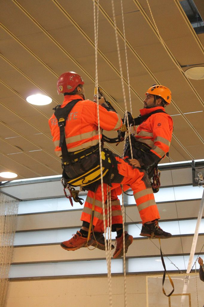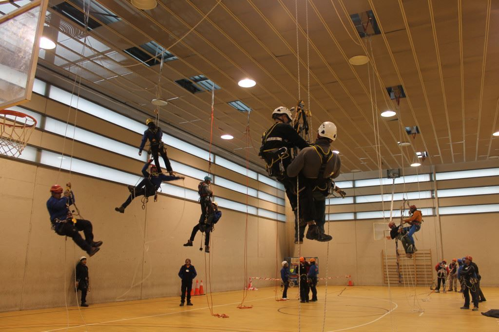 Posteriormente todas las empresas asistentes pasaron a realizar la práctica de esta maniobra. A continuación, tomo la palabra Teo (Altur) y nos explicó diversas técnicas de rescate de un operario suspendido de un elemento de anticaidas. Tras la demostración de dicha técnica se pasó a la realización de la práctica por las demás empresas asistentes.