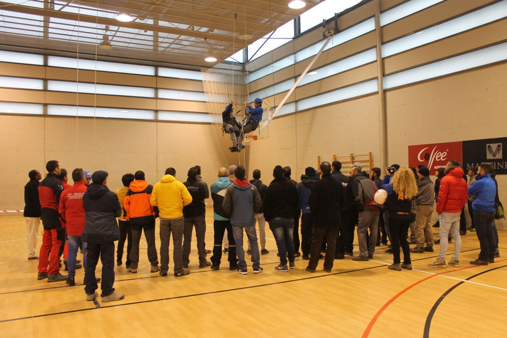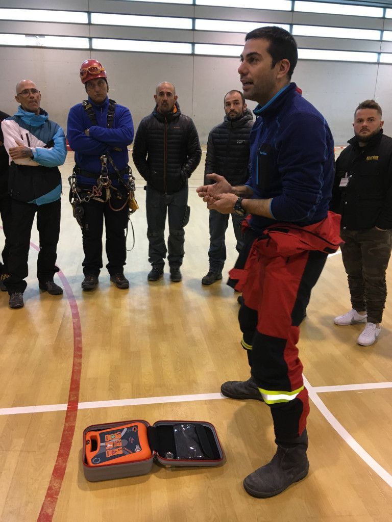 Acto seguido tomo la palabra nuestro compañero Gabi (Altitud) para explicar la maniobra de rescate de un operario suspendido del ID, pasando a realizarla a continuación.