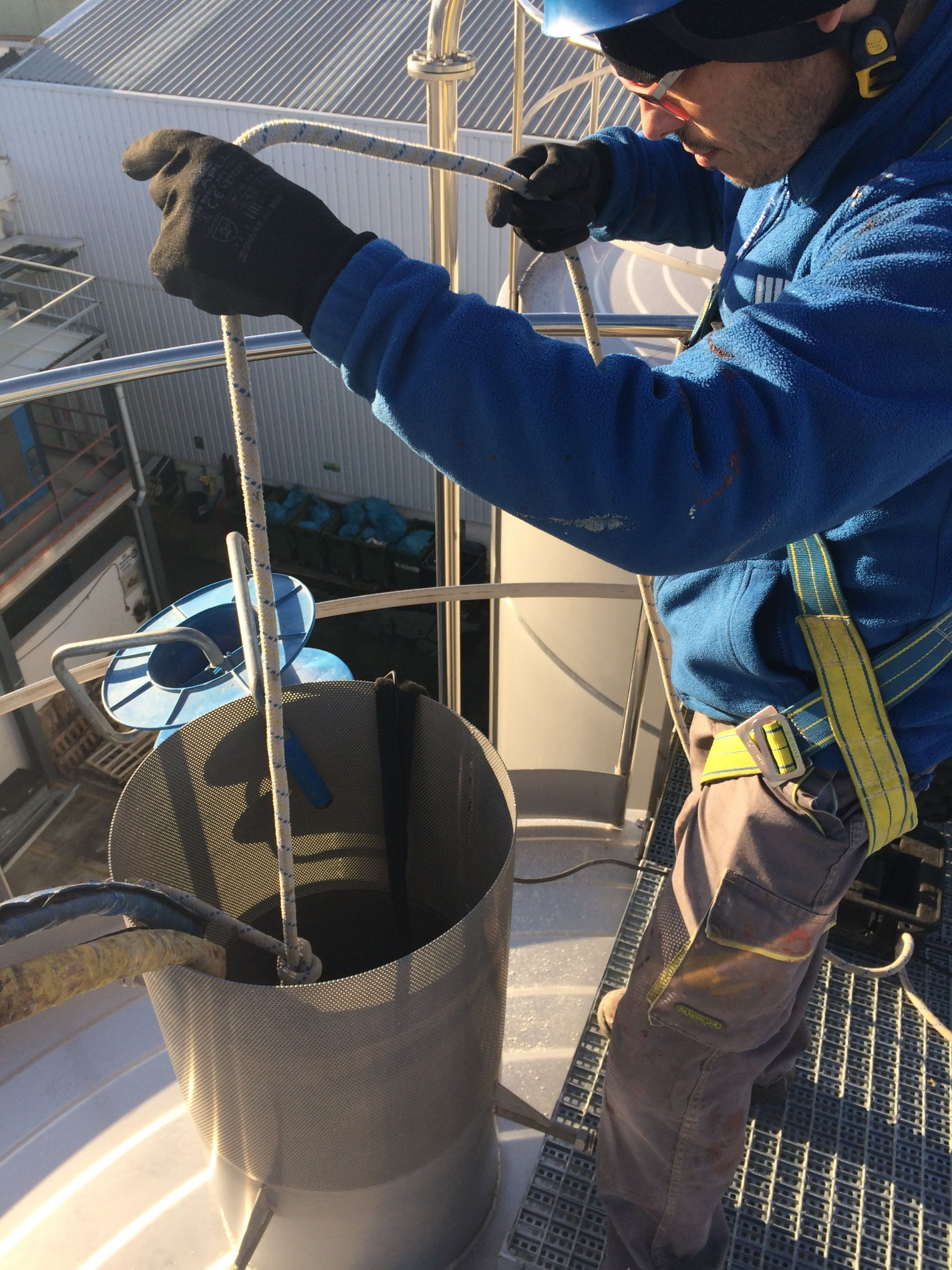 Dicha limpieza se suele efectuar introduciendo a un trabajador dentro suspendido de una cuerda, y que de forma manual va limpiando las paredes interiores del silo.