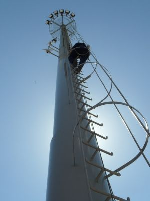 Dichas torres a menudo requieren de labores de mantenimiento, renovación de cableado, sustitución de bombillas, etc.