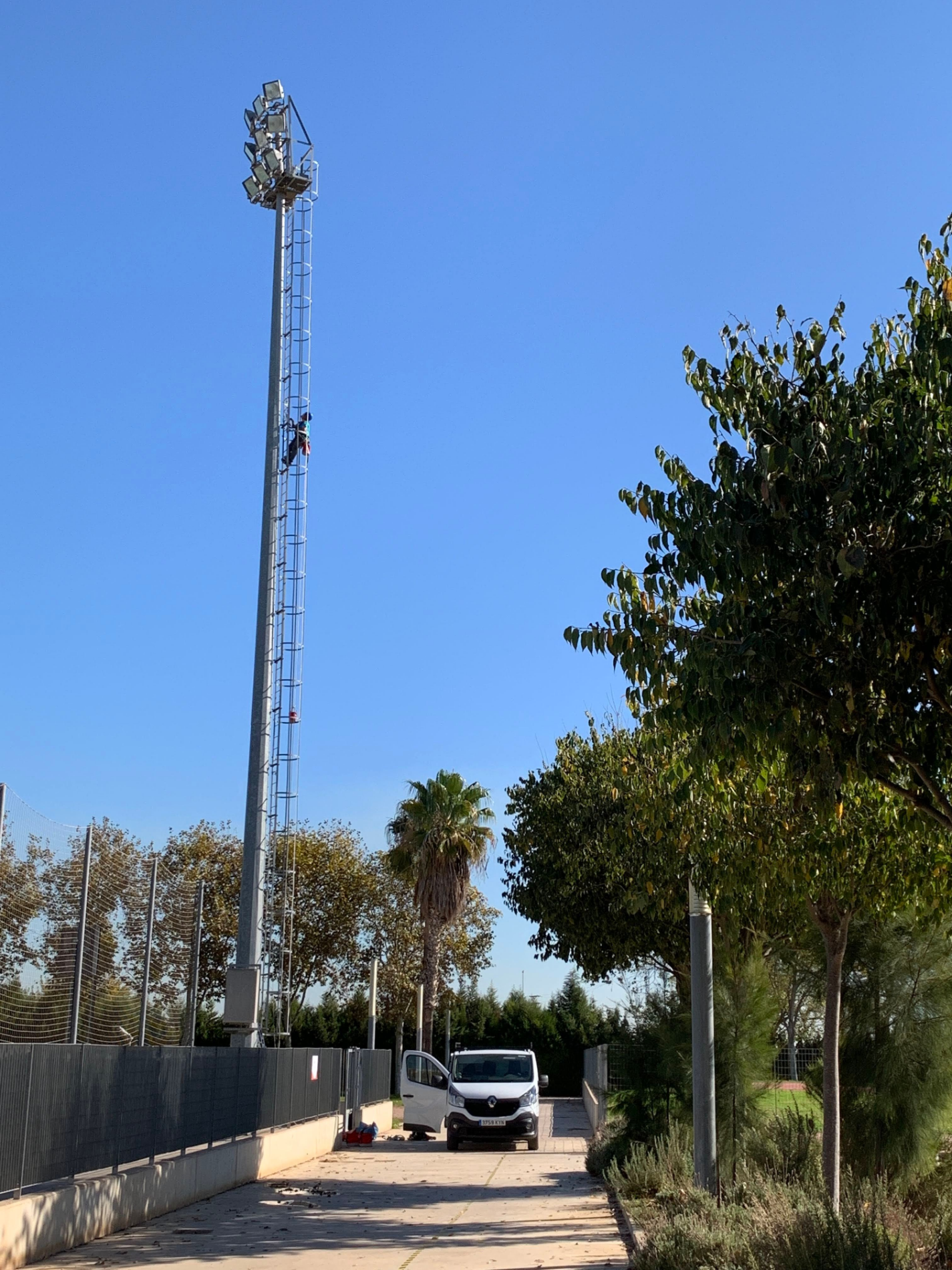 Las torres de iluminación son elementos que solemos encontrar en polideportivos, pistas de atletismo, de pádel o tenis, campos de futbol y un largo etcétera de instalaciones. Su función es iluminar el terreno de juego desde una gran altura.