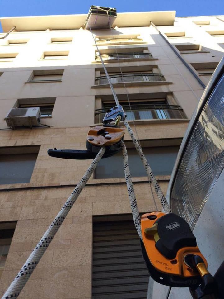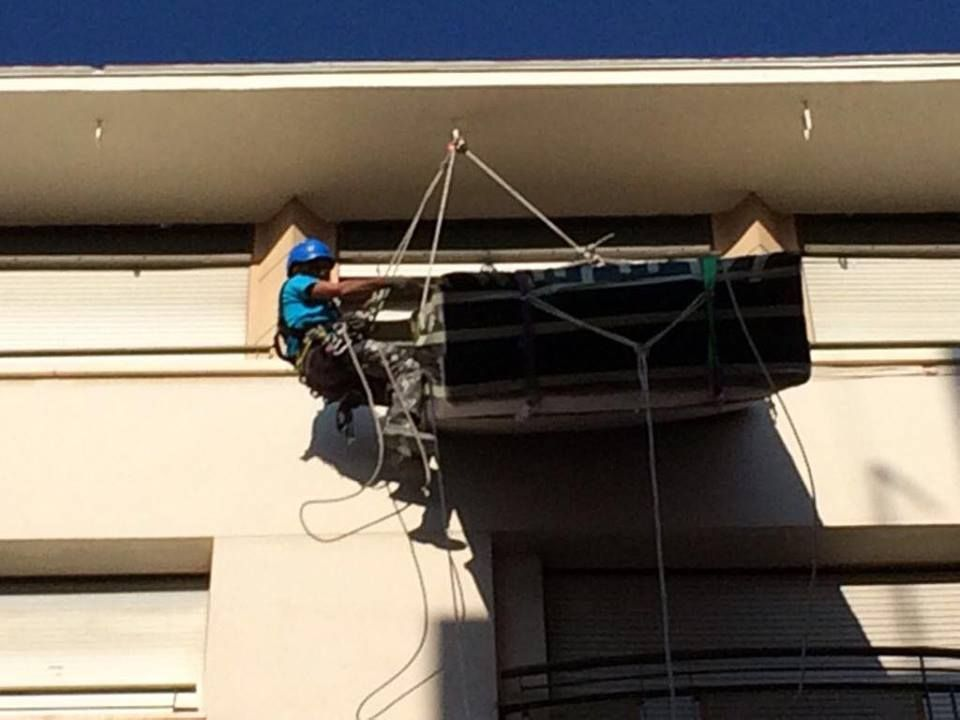 Todos hemos soñado alguna vez con abrir la puerta de la habitación del hotel al que acabamos de llegar y encontrarnos con un espléndido jacuzzi esperándonos. Pocas veces ese sueño se ha visto cumplido, al menos en mi caso. Afortunadamente este artículo, antes considerado de lujo, cada vez más está al alcance de los mortales. Pero una cosa es lo que nuestro bolsillo nos puede permitir y otra lo que nuestro edificio está preparado para admitir, porque… pensemos por un momento en las dimensiones de un jacuzzi, ahora pensemos en las dimensiones de ascensores, huecos de escaleras, pasillos, etc. No cabe, ¿¿verdad?? ¡Cierto! ¡¡No cabe!! ¿¿Entonces cómo hacemos para conseguir meter nuestro ansiado jacuzzi y colocarlo en ese rincón en el que tantas veces hemos soñado con disfrutarlo?? ¡¡Pues ahí es donde entramos nosotros, porque si no entra por la escalera entrara por la ventana!! Así que allá que fuimos, con nuestros equipos técnicos y nuestra dilatada experiencia en trabajos verticales y en altura.