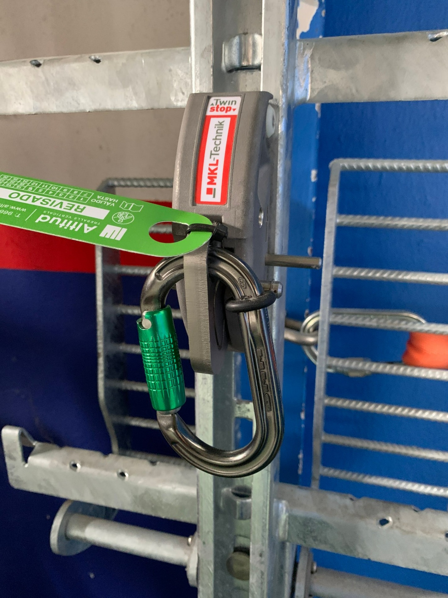 Las líneas de vida verticales son un sistema de protección compuesto por un cable o raíl que va fijado a la estructura de la escalera o paramento vertical y un dispositivo llamado carro anticaídas que se desliza libremente por el cable o raíl pero que se bloquea en el momento en que se produce una caída.